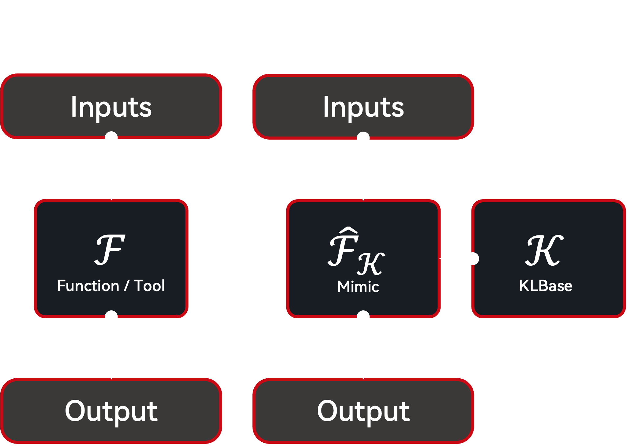 Now, we have a KLBase that contains function experiences and, potentially, other knowledge as well. The next step is to build a Mimic Function from the KLBase. A mimic function is a black box that emulates the original function. It takes the same inputs, along with the KLBase, to produce outputs that are similar to (or even better than) those of the original.
