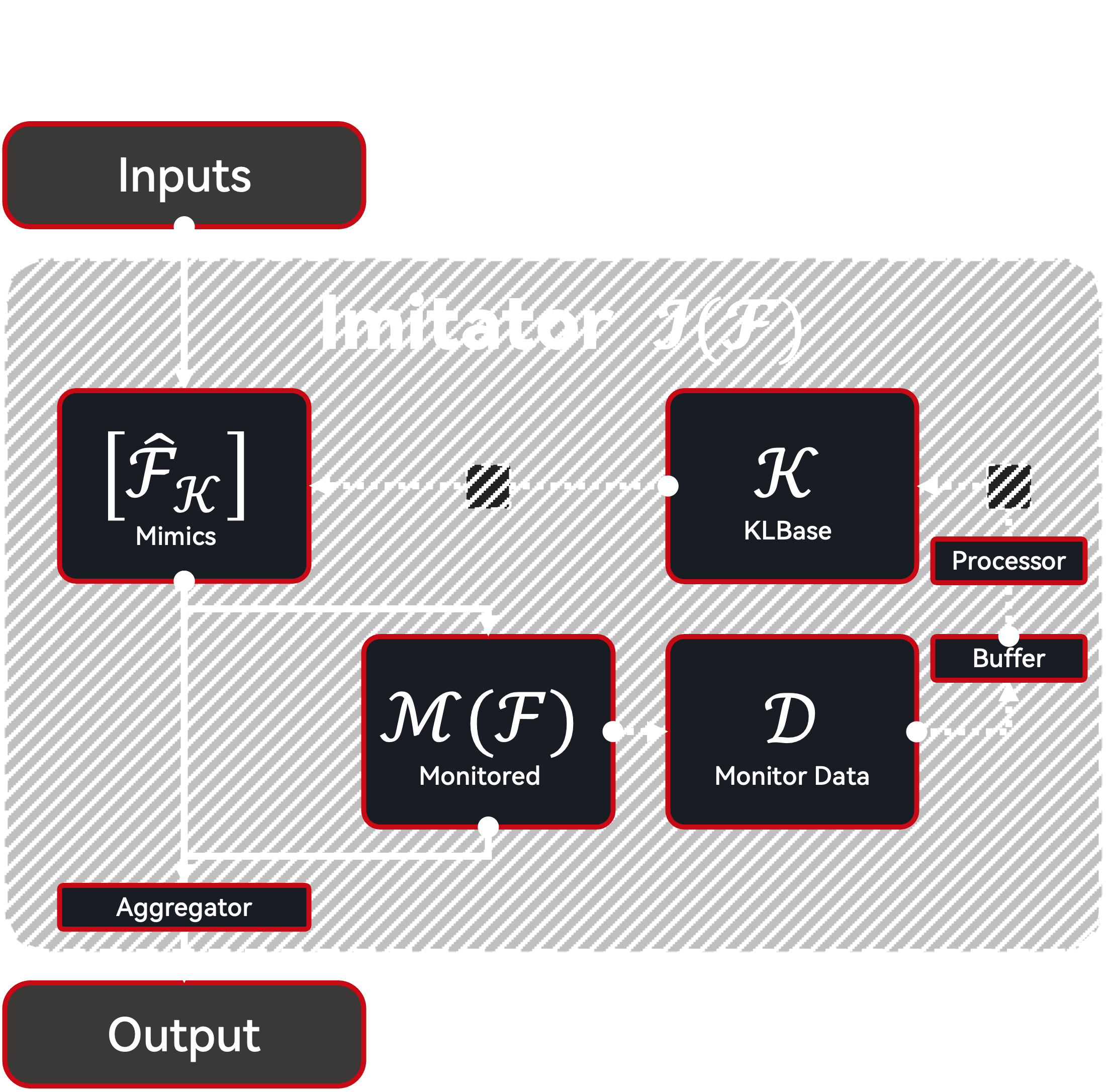 At any time, the imitator can be asked to create a mimic function from the KLBase. An Aggregator can then be applied to combine the outputs of the original function and different versions of the mimic function to produce the final output.